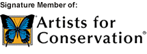 The award is made each month to a member of Artists for Conservation who has demonstrated a combination of artistic excellence and an outstanding contribution to the conservation cause. Other recipients of the monthly award have included Robert Bateman, Guy Harvey, John Banovich, David Shepherd, and Guy Combes, to name just a few.